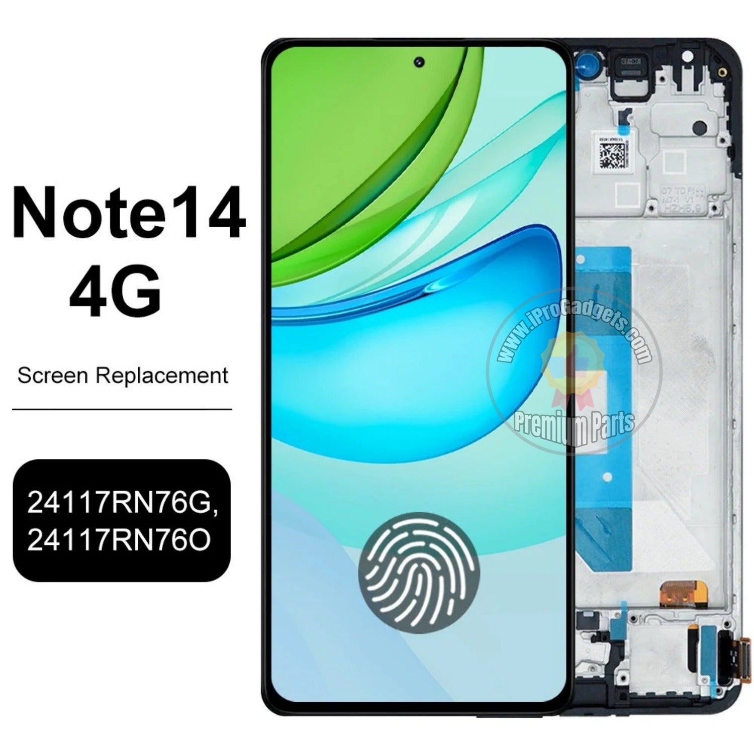 iProGadgets Repair Parts 6.67 inch New AMOLED Screen for Xiaomi Redmi Note 14 4G 24117RN76G 24117RN76O 24117RN76E 24117RN76L Display Touch Digitizer Assembly All Functions