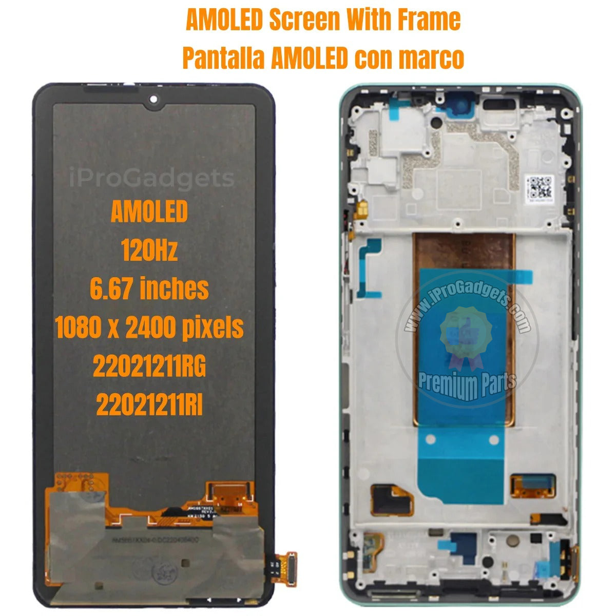 iProGadgets Repair Parts New AMOLED Screen With Frame For Xiaomi Poco F4 5G 22021211RG 22021211RI Display Touch Digitizer Assembly All Functions OEM