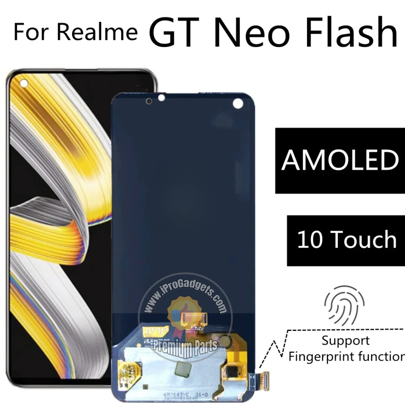 iProGadgets Repair Parts AMOLED Screen for Realme GT Neo Flash RMX3350 Display Touch Panel Assembly Replacement OEM Support all Functions