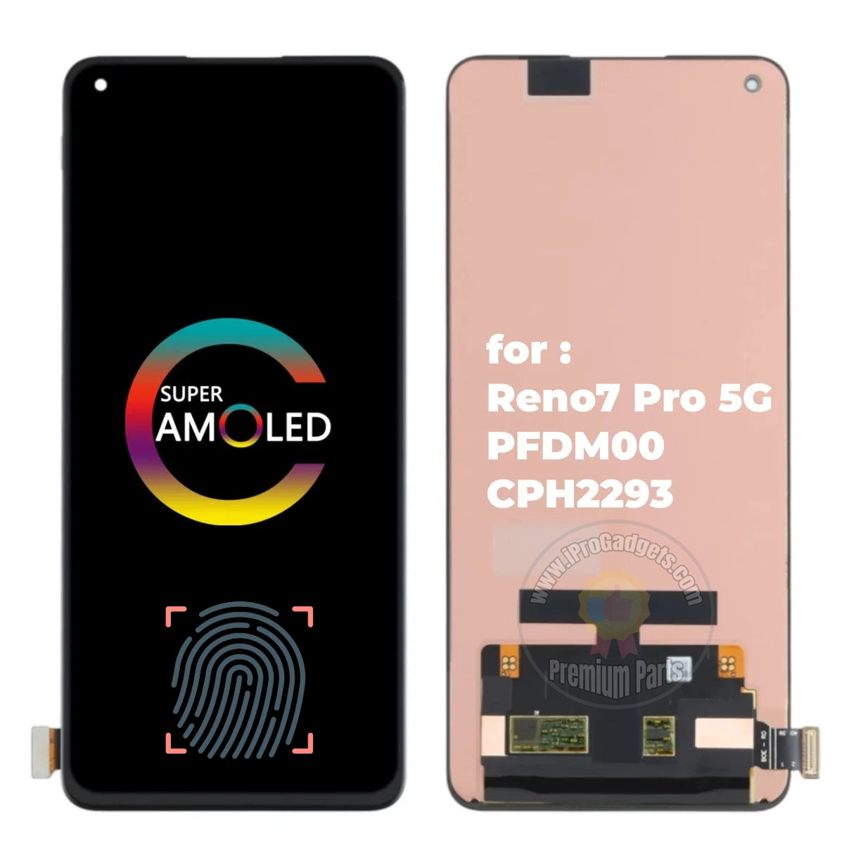 iProGadgets Repair Parts 6.55 inch AMOLED Screen for OPPO Reno 7 Pro CPH2293 PFDM00 Original Display Touch Digitizer Assembly Replacement Support all Functions