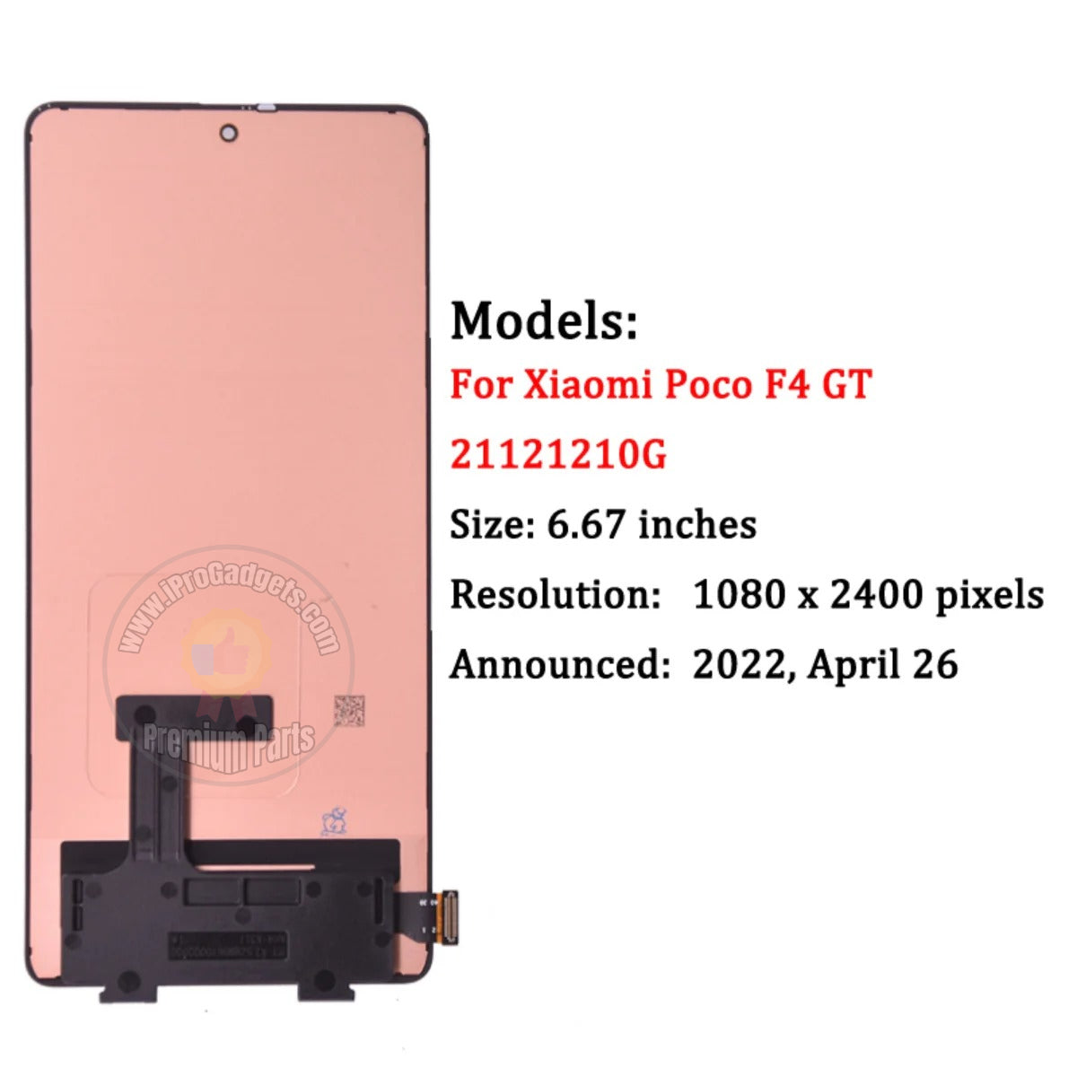 iProGadgets Repair Parts 6.67 inch Original Screen for Xiaomi Poco F4 GT 5G 21121210G 120Hz AMOLED Display Touch Digitizer Assembly All Functions